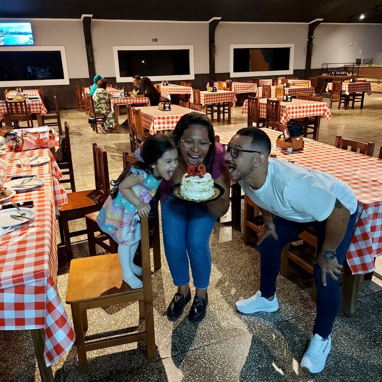 Logo após a cerimônia iremos nos dirigir a churrascaria herança situada na rua Ariramba da copa - 1300 BR 444, para comemorar nossa união. No qual o valor do rodízio do dia será aproximadamente R$120 por pessoa, crianças de 0 a 5 anos não pagam e de 6 a 11 pagam metade do valor. Por esse motivo é de extrema importância que confirmem a presença.